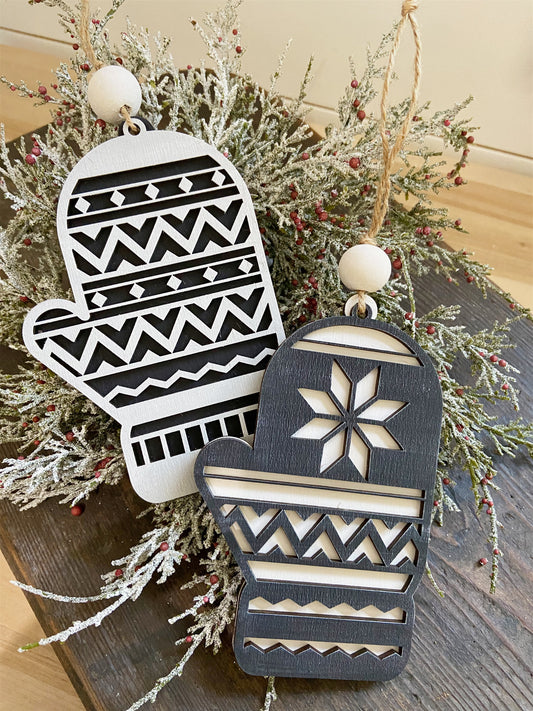 Set of 2 Boho Christmas Mittens Ornament | Christmas Decor | Home Decor