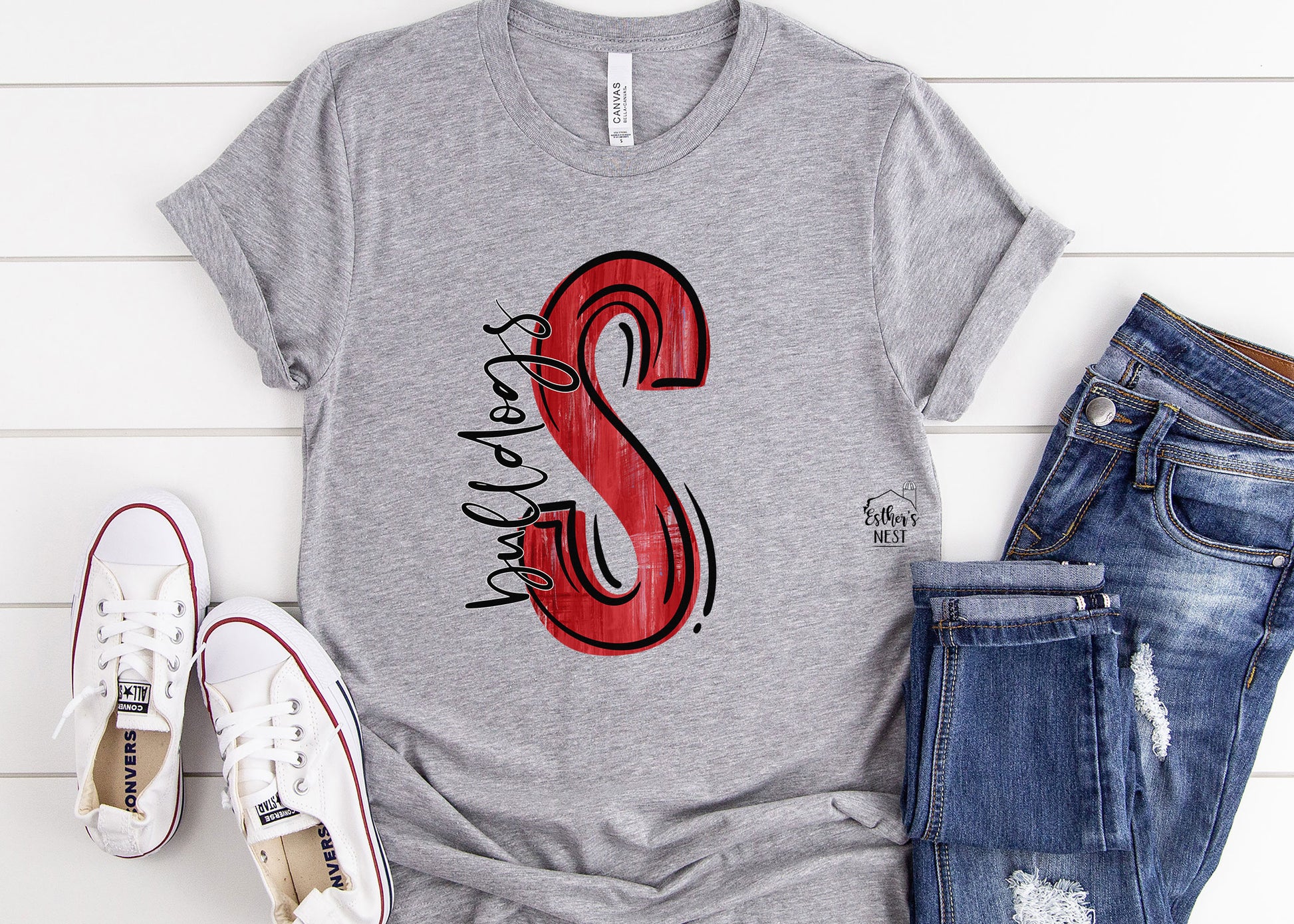 Show your school spirit in style with the Staunton Bulldogs Brushstroke Spirit Wear Adult Tee. This stylish piece of clothing features the S with an original digital brushstroke unlike any other! It's the perfect way to show off your school pride. This unique tee is a must-have item for any Bulldogs fan.